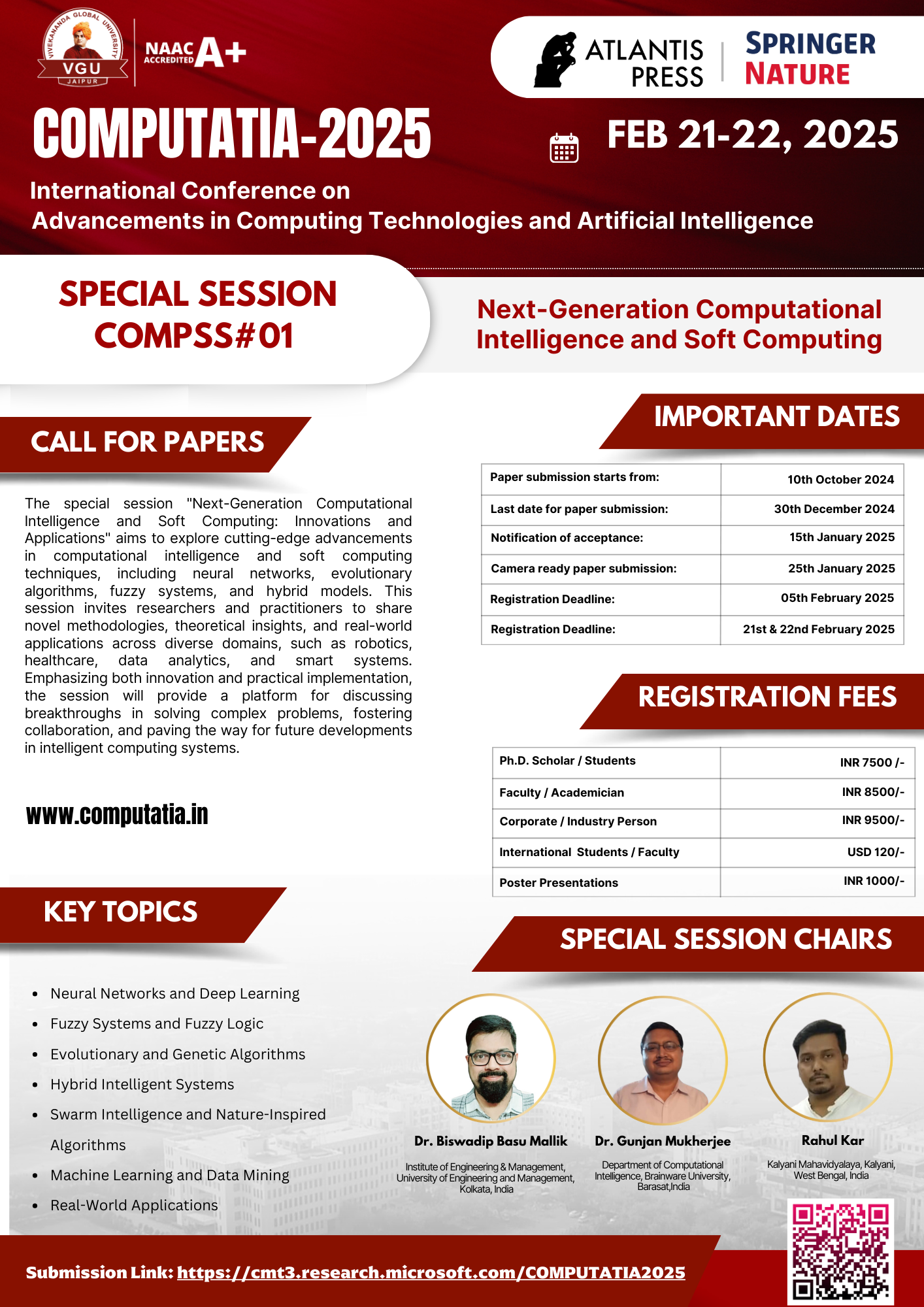 - Dr. Gunjan Mukherjee, Department of Computational Intelligence, Brainware University, Barasat,India